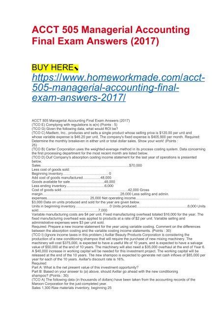 Read Accounting 505 Final Exam Answers Epub By Click Button. Accounting 505 Final Exam Answers it’s easy to recommend a new book category such as Novel, journal, comic, magazin, ect. You see it and you just know that the designer is also an author and understands the challenges involved with having a good book. You can easy klick for detailing book and you can read it online, even you can download it
